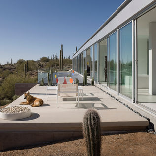 This impeccable Modern home is a residence of museum-like quality that celebrates the juxtaposition of Nature and Machine. Spanning eighty feet across a lush native arroyo, the home is a Living Bridge that allows the occupants to enjoy a unique connection to the beauty of the Sonoran Desert.
